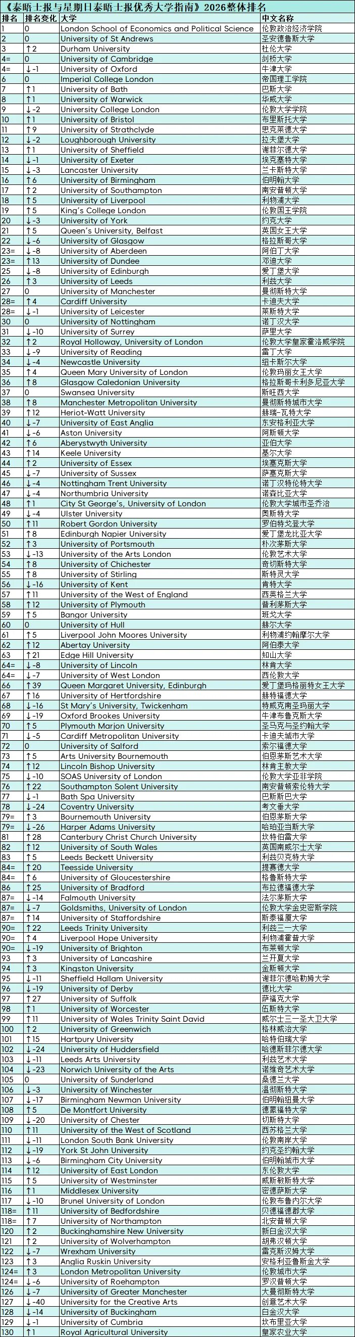 9月22日,备受关注的《泰晤士报与星期日泰晤士报优秀大学指南》(The Times and The Sunday Times Good University Guide)2026年度榜单发布。