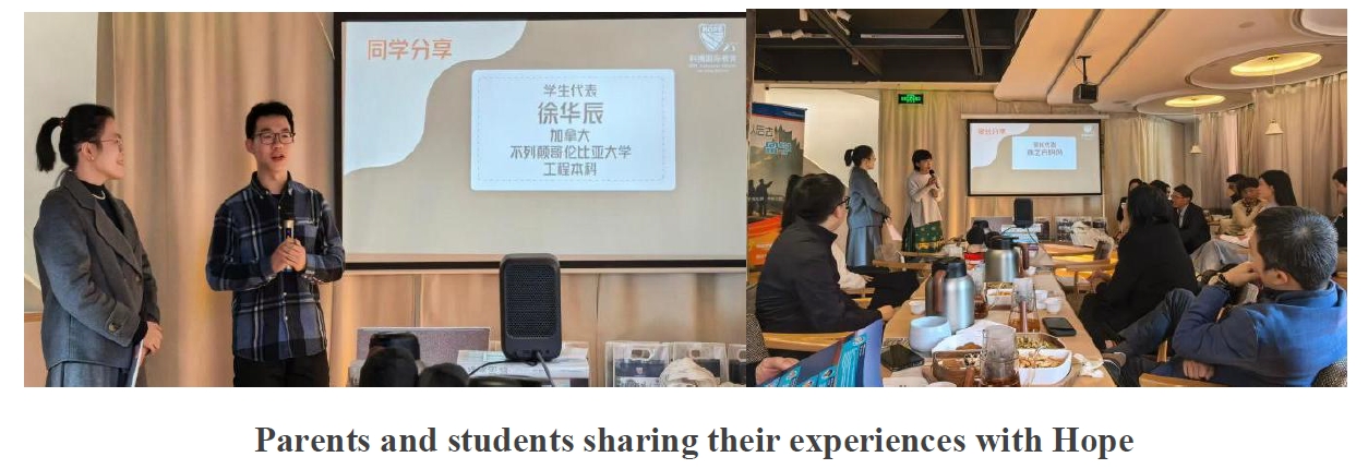 Hope sincerely thanks all the parents of overseas graduates, students, as well as the headmasters and teachers from our partner institutions and universities for their generous support and encouragement. It is this shared goodwill and sense of responsibility that made this winter afternoon exceptionally warm.