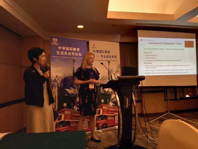 上海外国语大学附属宏达学校的吴校长给全体与会人员进行了国际合作经验分享:《走出去,请进来》。