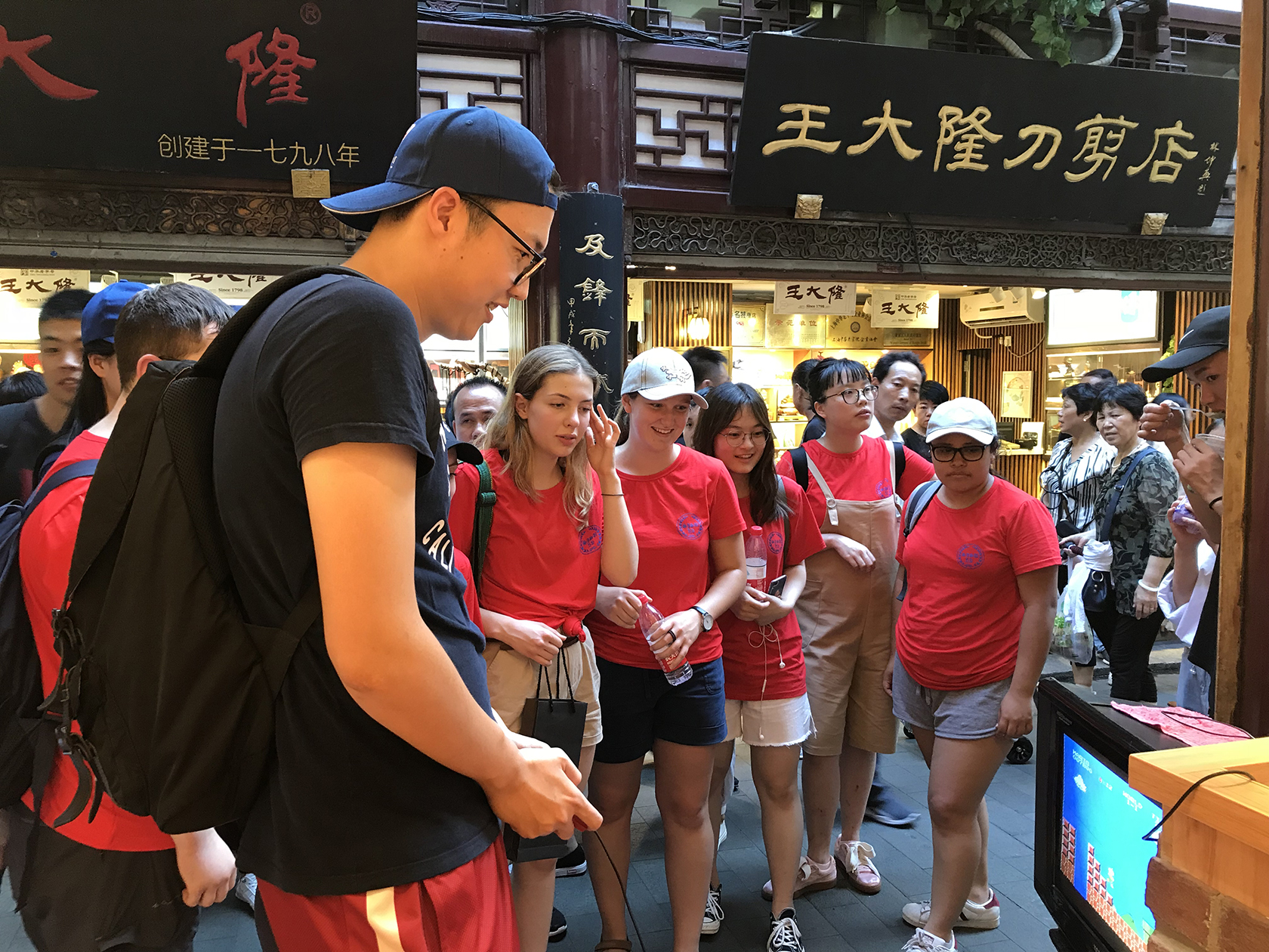 天色已晚,科博菌带着他们来到小吃街,品尝极具中国和上海特色的美食——小笼包、葱油饼和小馄饨,英国师生们对此表示他们非常喜欢。