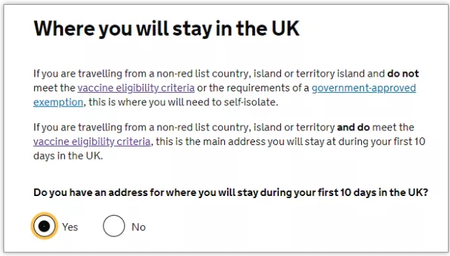 这份表格除了姓名、住址、电话、邮箱等个人信息外,最重要的是登记申报入境英国后隔离期间的住址信息——以方便今后卫生部工作人员检查10日居家隔离等工作。