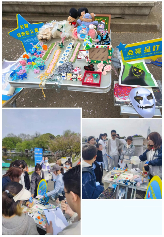 来自南京审计大学、南京艺术学院、南京汉开书院等学校的志愿者们,以及南方贝贝儿童发展中心的孩子们,精心准备了各种手工制品、绘画作品,帮助筹集善款,帮助自闭症孩子们更好地治疗。